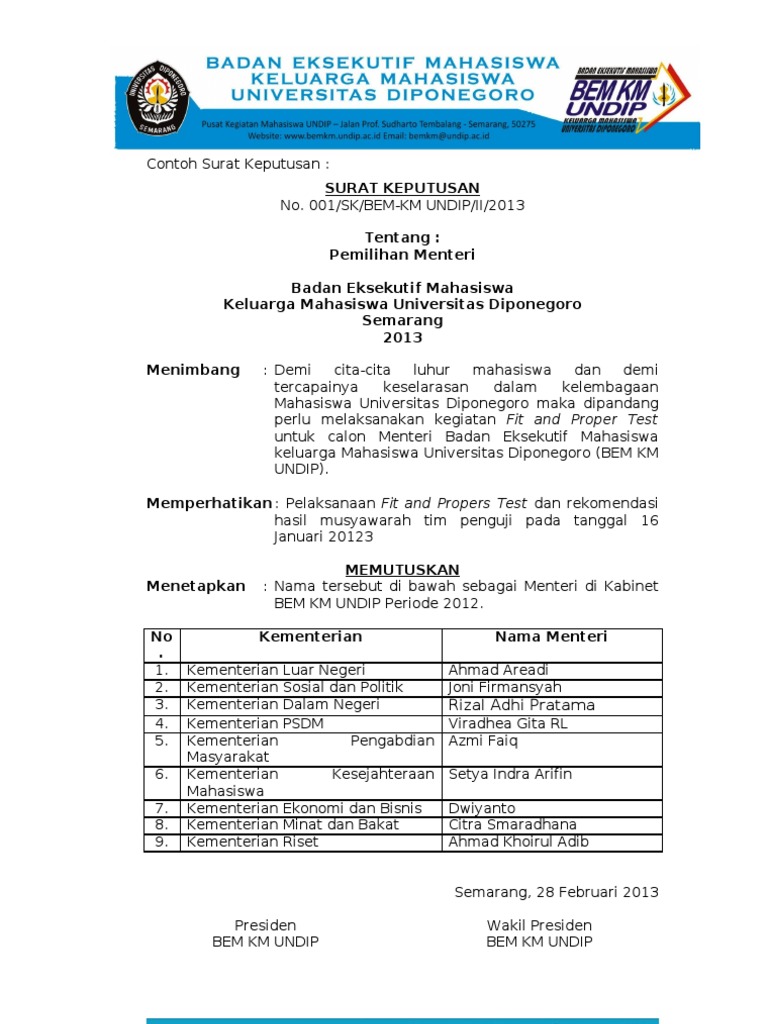 Sebagai dokumen pelengkap, bersama ini saya juga melampirkan: Wassalaamualaikum warahmatullahi wabarakaatuh pengurus badan eksekutif mahasiswa fakultas peternakan universitas mataram periode 2018 ketua umum sekertaris umum gogo lubis nim. Contoh surat permohonan sk bupati library pendidikan. Contoh sk untuk pengangkatan bem. Contoh surat permohonan izin tidak masuk sekolah. Fadillah idris kumpulan gambar contoh surat sk kepengurusan organisasi yang benar 2019. Demikian beberapa contoh surat permohonan mutasi yang bisa kamu jadikan referensi. Demikianlah surat ini kami sampaikan, atas perhatian dan kerjasamanya kami ucapkan terima kasih. Maka dari itu kami mengajukan permohonan sk ukm lembaga dakwah kampus raudlatul muttaqin pada kepengurusan yang baru yaitu kepengurusan 2014/2015. Surat permohonan dan keterangan yang dikeluarkan berdasarkan surat edaran mahkamah agung ini mengacu panitia pelaksana kegiatan memperingati diesmaulidiyah. Contoh surat permohonan sk susunan pengurus nurhadi sulistyo. Demikianlah surat permohonan penerbitan sk ini kami sampaikan, atas perhatian dan kerjasamanya, kami ucapkan terima kasih. Adapun susunan pengurus organisasi tersebut sebagaimana terlampir.